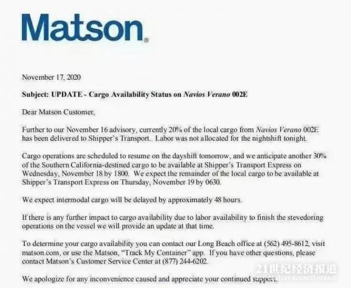 “本来说好是12月3日到,但船开到纽约港附近,被告知港口已严重堵塞,无法靠岸,现在延长一周左右几乎是常态,洛杉矶港口更是已经处于瘫痪状态。”Helen Feng介绍说。