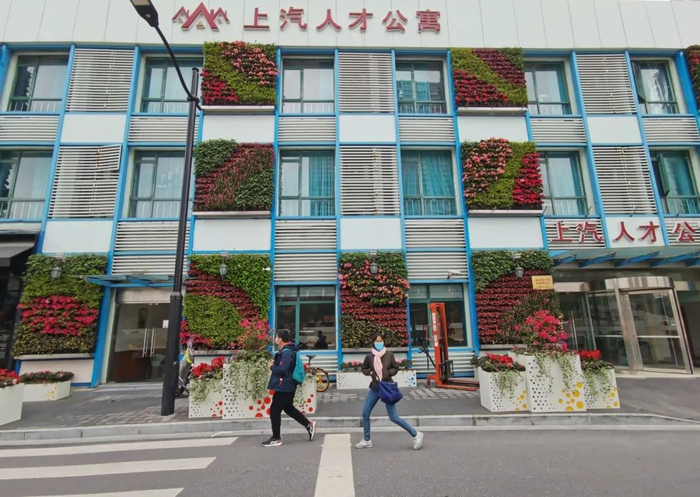 用花草为楼房披上“彩衣”、戴上“花帽”,让建筑更加可阅读。今年底,苏州河两岸42公里绿道将基本建成。其中,沿岸14处立体绿化已初见成效,为苏河添彩。