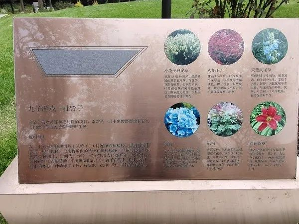 “九子公园”内的雕塑介绍旁,还增加了周边植物介绍