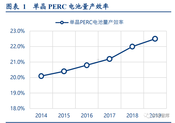 PERC 效率挖潜或接近极限,降本需求驱动电池片向高效率技术迭代:2014~2019 年 PERC 量产效率从 20.1%提升至 22.5%,保持着每年 0.5%的效率提升速度。目前,通过技术的升级优化,PERC/PERC+的量产效率已突破 23%,或 可进一步向 23.5%靠近,但效率挖潜空间正逐步接近极限。光伏需求大规模释放关键在于相比传统能源可体现更好 的经济性,因此光伏产业具备持续降本需求,高效率低成本技术路线或为终极答案。