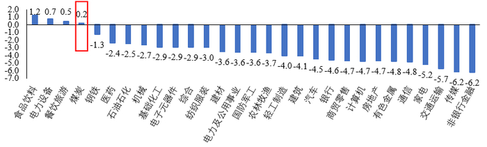 图2:A股煤炭及焦化板块区间涨跌幅(%)