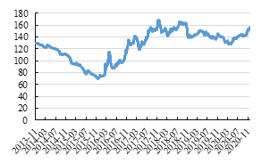 图14:澳大利亚峰景矿硬焦煤价格变动情况(美元/吨)