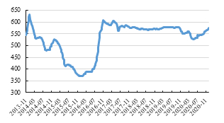 ★截至12月9日,秦皇岛海运煤炭交易市场发布的环渤海动力煤价格指数(环渤海地区发热量5500大卡动力煤的综合平均价格)报收于574.0元/吨,周环比上涨4.0元/吨;