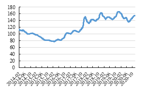★水泥价格指数:截至12月11日,全国水泥价格指数较上周同期上涨0.03点至155.0点。
