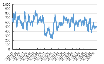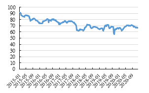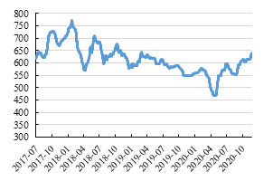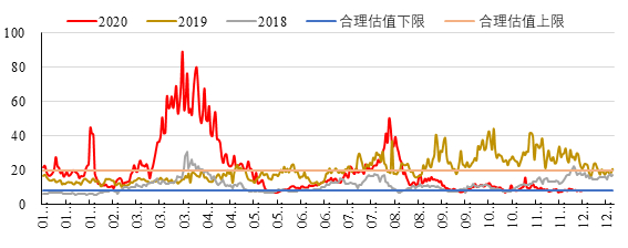 图23:2018-2020年北方四港货船比(库存与船舶比)情况