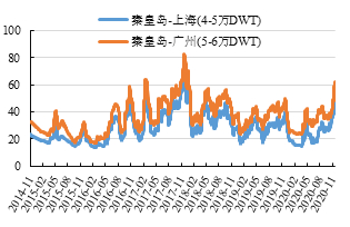 ★煤炭海运费:截至12月11日,秦皇岛-上海(4-5万DWT)的海运费价格为49.0元/吨,周环比上涨7.4元/吨;秦皇岛-广州(5-6万DWT)的海运费价格为62.1元/吨,周环比上涨8.9元/吨。