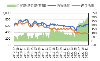 ★内贸煤进口煤价差:截至12月2日,我国广州港内贸煤减去进口动力煤价差为327.7元/吨,价差较上周有所扩大。