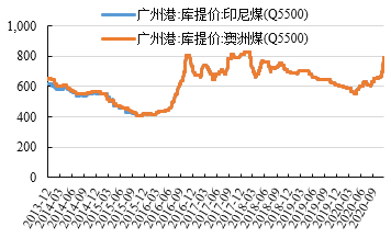 ★截至12月11日,广州港印尼煤(Q5500)库提价790.0元/吨,周环比上涨70.0元/吨;广州港澳洲煤(Q5500)库提价790.0元/吨,周环比上涨70.0元/吨。