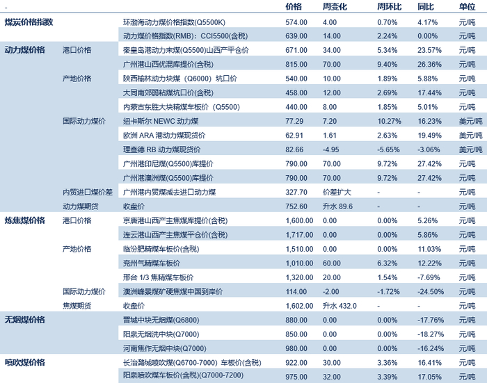 三、煤炭价格跟踪:煤价普涨,期货升水