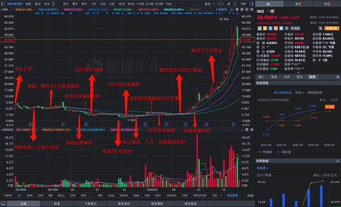 蔚来自上市以来的股价和公司大事件