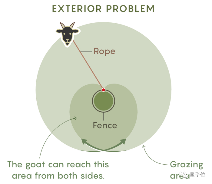 例如,除了让山羊在围栏内吃草,还让山羊到围栏外吃草,并计算它能吃到的最大草地面积(其中,绳索长度和围栏周长固定):