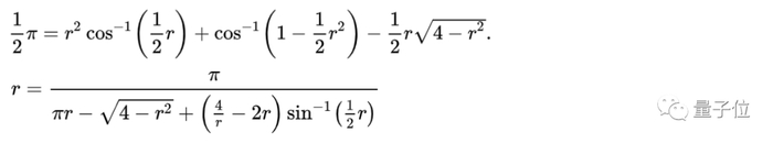 假设围栏的半径为1,那么在「山羊问题」中,求解条件将变成R=d=1,且A=1/2π,求解出来的r符合这一方程式: