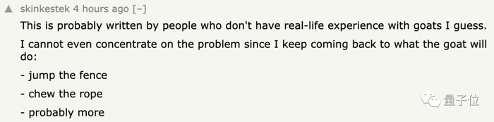 我认为这个问题,是没有山羊相关的经验的人提出的。因为我一想到山羊,就会想到它们在拼命跳篱笆、嚼绳子……这让我没办法专心解决这个问题。