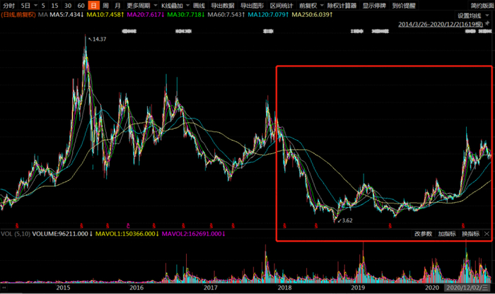 (红框内为2018~2020.12.2林洋能源股价走势,来源:choice数据)