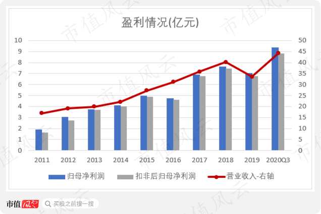 公司的盈利质量一向不错,扣非后净利润与归母净利润之间的差额不大。2019年、2020年前三季度二者差额扩大主要由政府补贴和理财产品投资收益增加引起。