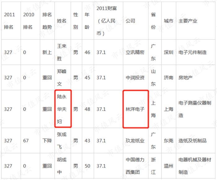 2011年2月,永华BVI完成公司清算。同样在2011年,陆老板夫妇重回中国福布斯富豪排行榜。
