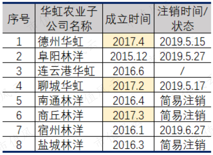 比较蹊跷的是,林洋农业的不少子公司都是在2016年甚至2017年才成立。