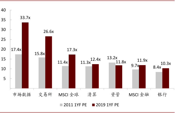 图表: 交易所整体估值水平较其他金融企业表现更优