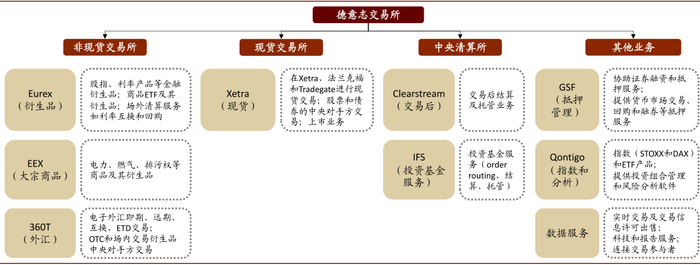 2、德意志交易所:资产类别丰富、交易前/中/后功能完备的综合交易所集团
