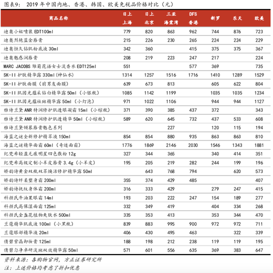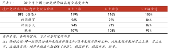 正常情况下(2019年),日上上海(上海机场)、日上北京(首都机场)与三亚海棠湾的免税价格在全球范围内已具有一定竞争力。平均而言,香港DFS价格较内地高6%-19%,韩国较内地低5-15%,欧美原产地则与内地价格相当。由于香港实行全岛免税,在港免税商的价格体系经过了充分的竞争以适应市场,即DFS香港免税店的价格达到了市场充分竞争后的稳态价格。韩国为了吸引国外代购,在引导市场充分竞争的基础上,提供35%-40%的高额返佣,价格普遍低于全球其他地区价格。