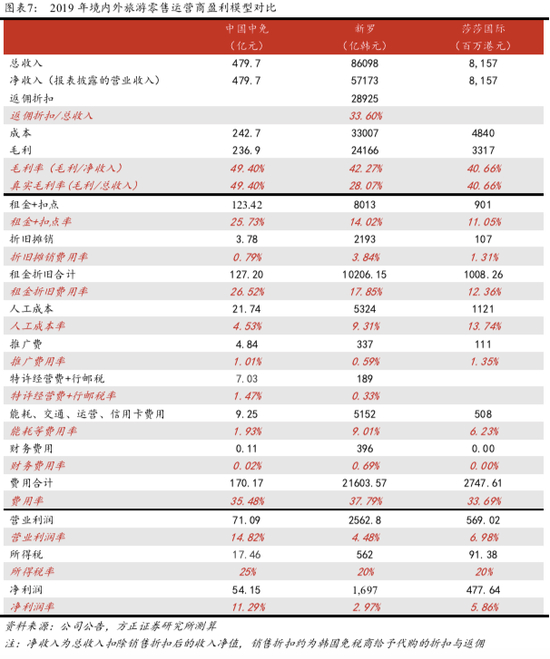 运营商净利率对比:中免11.29%VS新罗2.97%VS莎莎5.86%。从运营商整体表现来看,中免净利率仍然显著高于韩国与香港运营商,主要为租金、人力、运营费用等营商环境相关因素所致。