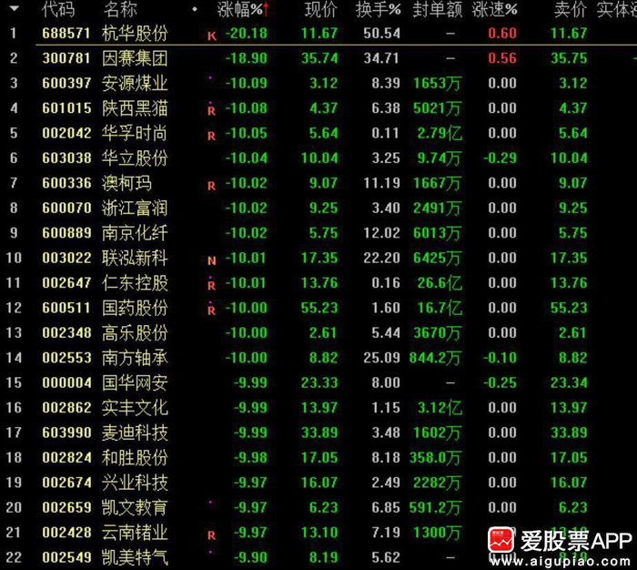 【跌停】今日跌停有点多,说明什么?老的周期退潮结束,补跌完成才会有新的一轮。上周绝密内参里我说过,这轮本周上半周等朗姿股份,大豪科技走完才有新周期。他们是最后的龙头,其他小弟肯定先挂先跌停。就这么简单。