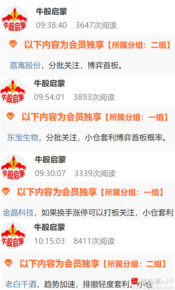 四、高手启蒙:我们挖掘的股都有逻辑基础,对整个盘面和市场预判也是提前准确。内参计划都是盘前发布,按照内参思路和实践经验教学,慢慢尝试独立思考,小白很快会被启蒙为成为高手。治标更治本。