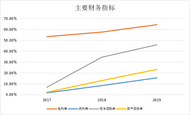 同时,随着营收的增长,2017-2019年,蓝月亮的毛利率、资产回报率等主要财务指标也均呈上升态势。
