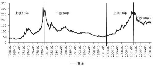 图为长周期下的黄金价格(按长周期划分)