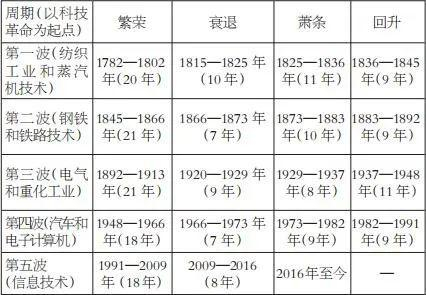 表为熊彼特综合周期的长周期细节