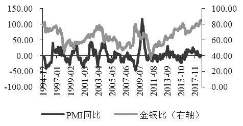 本文使用了黄金价格同比与美国制造业PMI订单库存同比做数据相关性分析,结果显示两者的相关系数为0.146,回归拟合优度为2.6%,再通过探究黄金价格与美国短期库存周期的变动,可知黄金价格变动与短期库存周期性波动并无较大明显的关系。不过,值得注意的是在库存周期中黄金和其他大宗商品的比值存在明显的反向关系,如黄金白银比在库存周期中呈现出一定的周期性变化,总体趋势是反向变动关系,这可理解为经济上行时黄金走势不如白银,反之大于白银。这种比值变化在黄金与其他金属比显得尤为明显,如对比黄金与铜的比值可看出2000年以后两者的变动负相关较为强烈,金铜比上升或者下降与美国库存周期走势负相关。