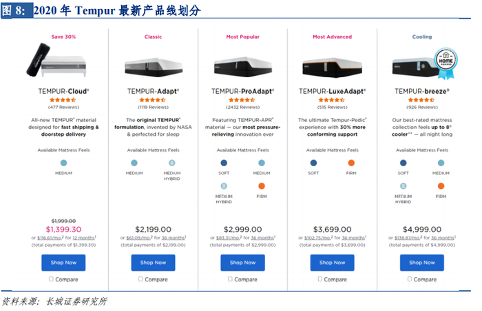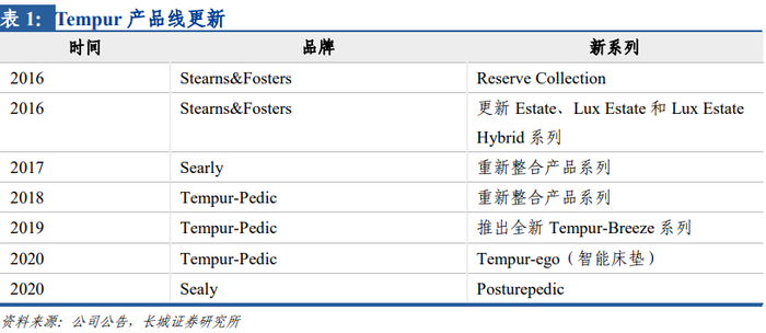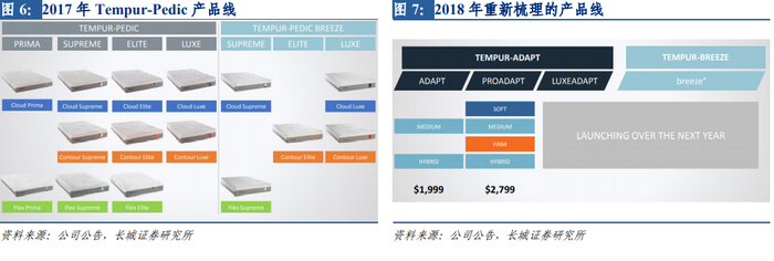 持续进行新品迭代及产品线优化,更好满足细分需求。公司持续进行新品推出和迭代,并对产品系列进行优化,以更好地满足消费者需求及降低选购难度。例如2018年时,公司对Tempur的产品线进行优化整合,使用更加清晰和统一的产品划分方式以降低消费者选购难度。