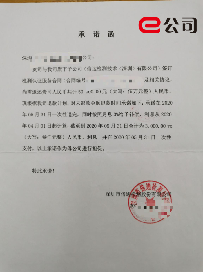 (倍通检测出局的还款承诺书)