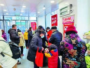 此外,门店招牌上“不卖隔夜肉”的宣传标语非常醒目,在门口便张贴着钱大妈标志性的清货时间表:从19:00开始9折促销,每半小时再低1折,直至23:30免费派送。新颖的促销方式也吸引了不少消费者前来选购。北京商报记者在现场看到,门店有不少消费者前来选购商品,大部分为年龄较大的消费者,收银台也一直都处于排队的状态。