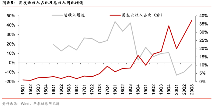数字化改造趋势延续,疫情加深企业对云的认知。通过数字化改造提升效率是企业转云的重要推动因素。虽然2020年受疫情冲击,企业推进信息化的节奏有所放缓,但企业通过云化提升效率的趋势仍然在延续。以酒店行业为例,受疫情冲击,希尔顿(HLT.N)、洲际酒店(IHG.N)等国际酒店龙头20H收入均同比下降40%以上。在此背景下,酒店业积极推进云转型,如半岛酒店(0045.HK)与石基信息(002153.CH)子公司签订协议,将采用新一代云架构的企业级酒店信息管理系统。从企业财务数据看,以用友(600588.CH)为例,20Q1-20Q3用友云收入占比迅速提升,带动总收入同比降幅不断收窄,云化的快速推进成为企业走出疫情冲击的重要推动力。我们认为,数字化改造提升效率的大趋势将在2021年延续,在此基础上疫情加深企业对云的认知,有望起到一定的催化作用。