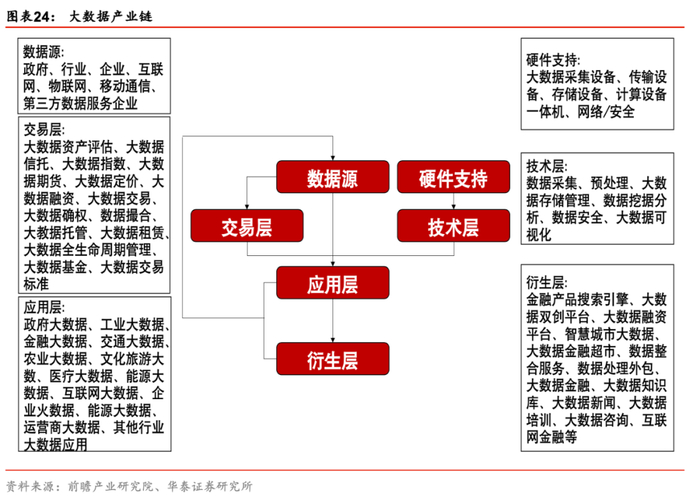 大数据的产业链构成覆盖了数据从产生到应用的整个生命周期,大致可分为数据标准与规范、数据安全、数据采集、数据存储与管理、数据分析与挖掘、数据运维及数据应用几个环节。