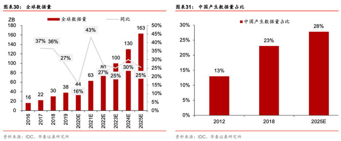 数据量积累为人工智能应用发展提供基础。随着云计算、大数据等信息技术快速发展,产业数字化转型加速,全球数据量迅速累积,为人工智能提供了基础。据IDC预测,至2025全球数据量将达到163ZB,约为2016年的十倍。其中我国受益于近年来移动互联网迅速发展,在数据积累上形成了一定的优势,产生数据量占全球数据量比由2012年的13%提升至2018年的23%。据IDC预计,2025年我国产生数据量占比预计达到全球的28%。我国迅速积累的数据量也为人工智能我国的应用提供了发展基础。