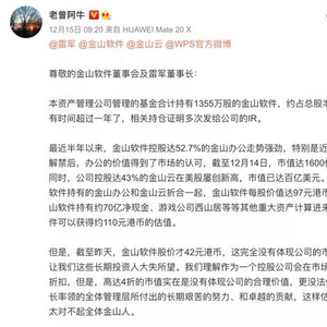 因此,金山办公的股东在网上喊话雷军,不满金山软件“白菜价”,希望公司回购或分拆二次上市。