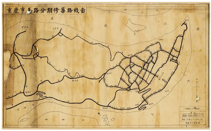 图2 建设重心向上半城转移时期的“马路分期修筑路线图”(1939)