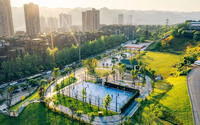 根据重庆市政府发布的《利用主城建成区边角地建设社区体育文化公园实施方案》(2018),在龙湖地产等作为工程总承包及运营(EPC+O)单位的参与下建成92个社区体育文化公园,将零星闲置土地激活融入市民生活。(图16)。
