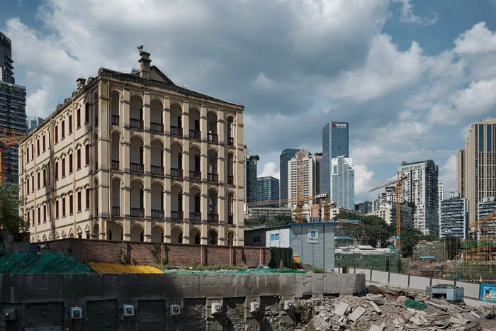 近景为十八梯传统风貌区内的法国领事馆旧址
