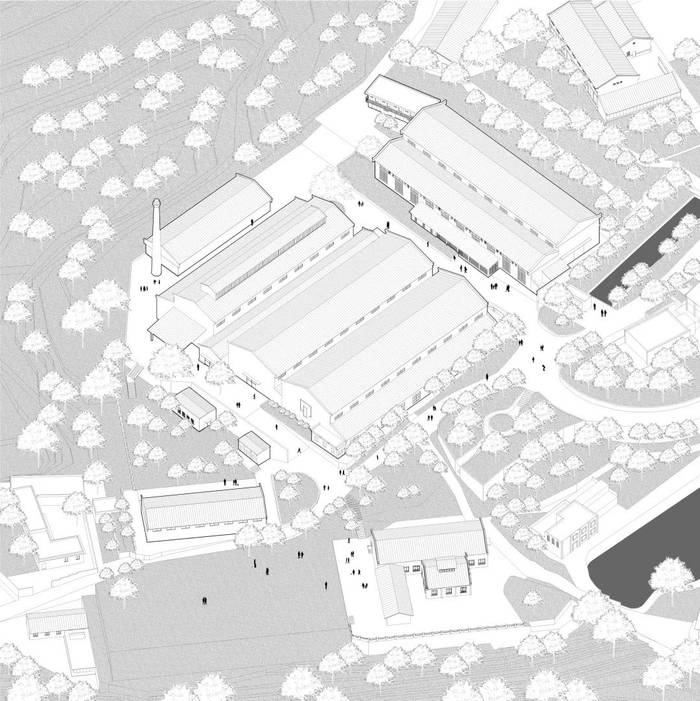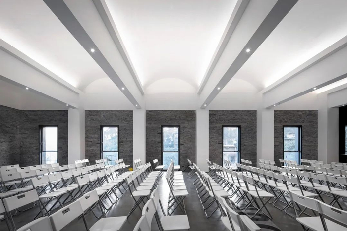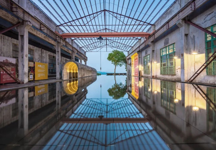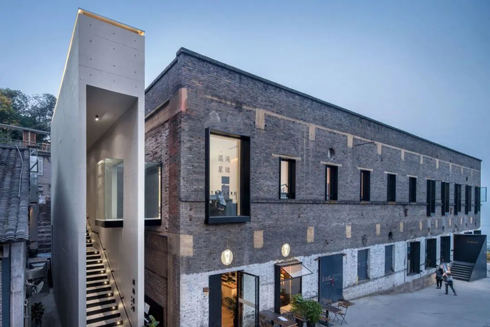 “三线建设”时期,大量军工企业落子重庆,其中相当数量已停产转型,形成了与中心城区有着显著区别的郊区工业遗存。位于涪陵区的绝密级816核工程是1966年开建的全国第二个核原料工业基地,1984年该工程停建,围绕816工程周边配套厂区、住宿区开始了新一轮蜕变转型。2020年,在经费极为紧张的现实下,以微更新方式实现主要配套厂房功能与形象转型,生产了全新空间体验与使用方式(图25)。