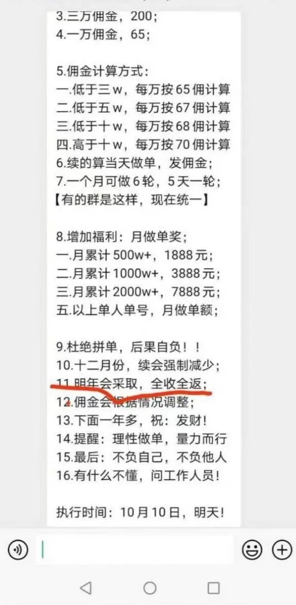 不过,多数人对蒋子华进行投资是因为收益可观。“投资10万,当天给佣金700元,5天后返佣金,很难不被吸引。”宝妈李新表示,过去一年她靠投资赚取3万块。另一位投资者齐月表示,因为想获得更多的收益,她一般不要求退回本金,已经投入了300多万。