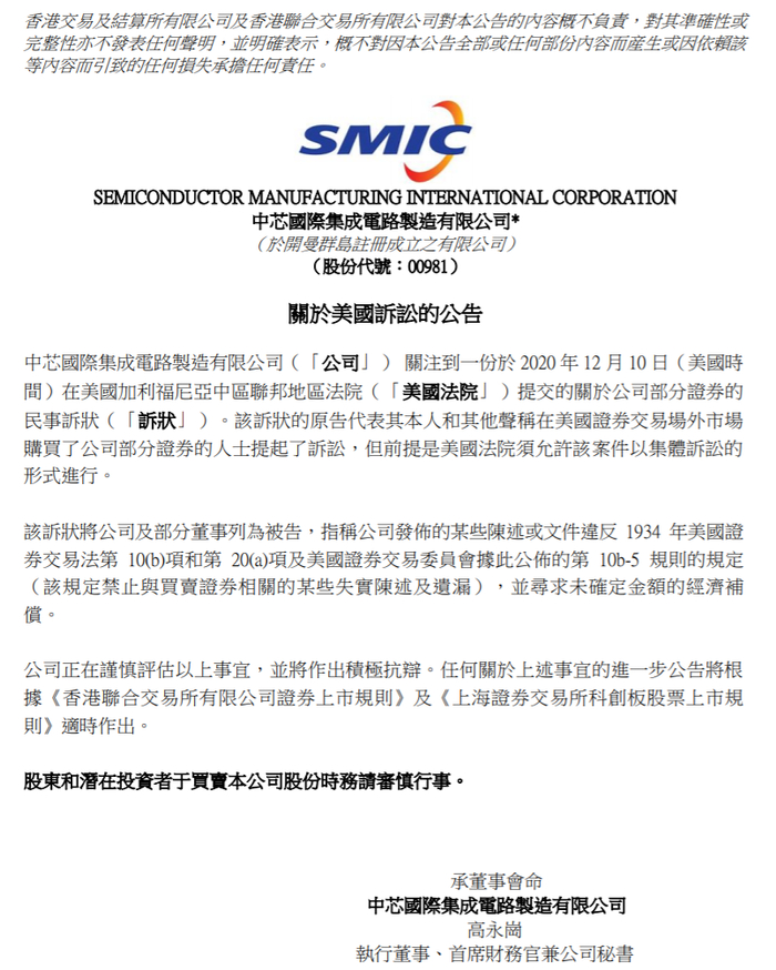 外部环境显然并不乐观,美国国防部 12 月 3 日将中芯国际列入“中国军方企业”(Chinese military companies)名单,开始逐渐升级限令,中芯面临卡脖子风险。同时,中芯也在面临各种诉讼,也失去了华为这个大客户。