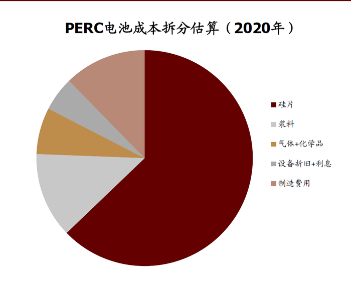 图表:PERC与HJT电池片成本结构估算(2020E)
