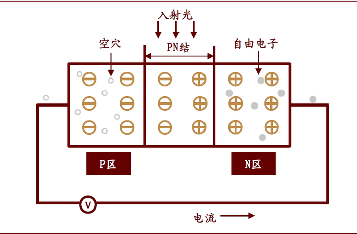 我们在报告《光伏设备2019投资手册:技术迭代催生设备需求》详细介绍了光伏电池片发电的基本原理。简而言之,若将P型半导体和N型半导体进行紧密接触,则在交界处会形成内建电场。在光照激发下,电池内部将产生光生载流子(电子空穴对),并在内建电场的作用下发生分离,并由电极引出,形成电流。