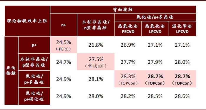 虽然传统PERC技术的提效降本空间已经有限,但我们认为通过在PERC技术上做工艺加法,有望提升PERC的转化效率,降低生产成本。目前比较可能施行的工艺加法主要是PERC+和TOPCon技术。