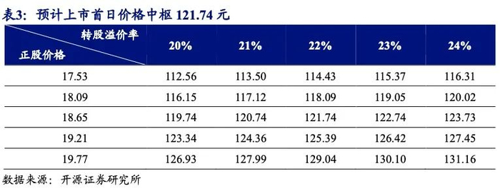 3、 预计上市价格中枢:121.74元