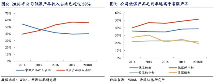 我国乳制品行业空间广阔,乳制品销售规模位列全球第二。目前我国常温乳制品市场已经趋于成熟,随着冷链运输技术的提高、生鲜电商的兴起以及消费者对奶制品质量要求的提高,低温市场的发展机会已经到来。疫情之后,消费者对于自身健康关注度提高,更加重视饮用高品质牛奶来提高自身免疫力。公司以低温鲜奶、低温酸奶产品为主导,不断优化产品结构,据2019年年报,低温产品销售收入占比已超过60%。相比于常温产品,低温产品的价格更高,公司的低温产品毛利率远高于常温产品。