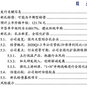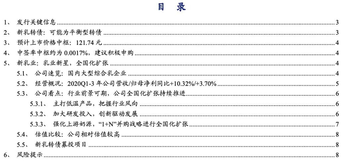 本内容源于2020.12.17已发布报告《乳业新星,全国化扩张——新乳转债申购价值分析》——事件点评